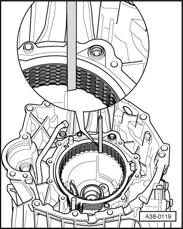 The reverse gear clutch plates must not be removed from the transmission housing.