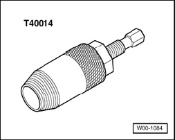 - Rotate seal ring extractor T40014 by hand into shaft seal until the tool has a good hold in the shaft seal. Then tighten puller with an open-end wrench.