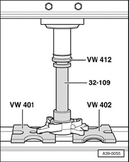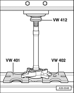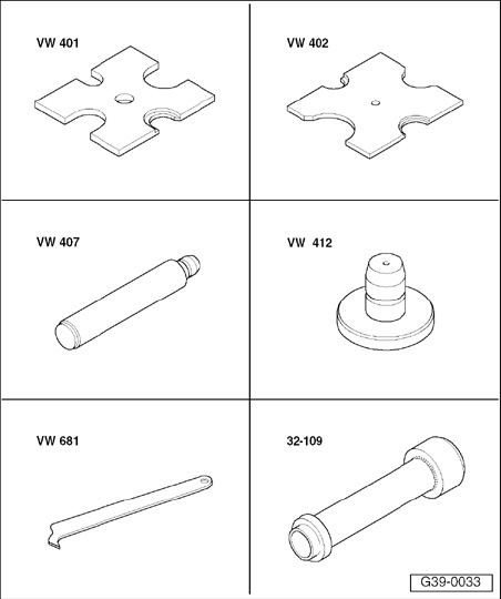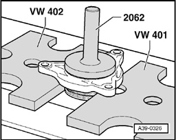 - Pull sealing ring for flange shaft out of mounting bracket using extractor lever VW 681.