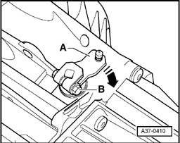 - Connect lever for selector shaft -A- to selector shaft and tighten bolt -B-.