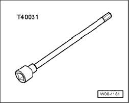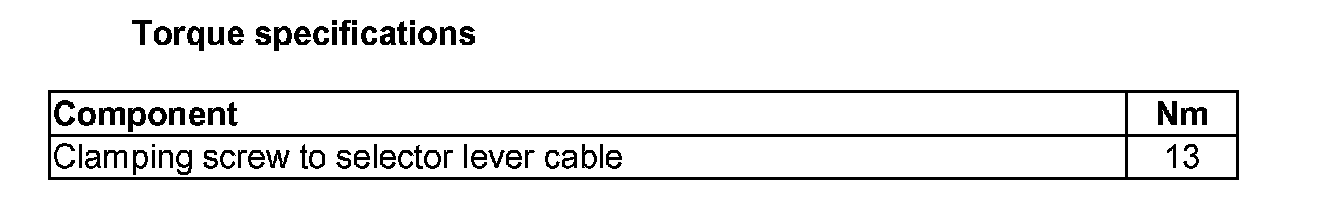 - Loosen rear clamping screw on selector lever cable through hole in shift mechanism approx. one turn using socket and key T40031.