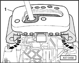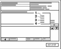 ^ Using Vehicle Diagnosis, Testing and Information System VAS 5051 A, the position of Multi-Function Transmission Range (TR) Switch F125 can be compared to position on selector lever via On Board Diagnostic (OBD), 02 - Transmission electronics, 08 - Read measured value block, display group 2 in display field -1-.