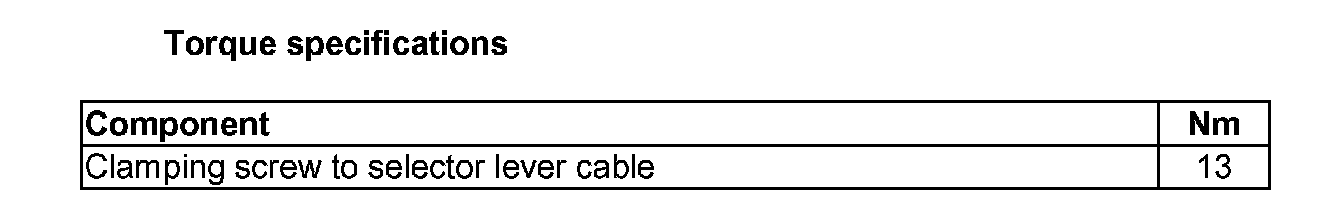 ^ In vehicles with "PRNDS" shift mechanisms (from model year 2005), selector lever cable adjustment is performed in selector lever position "S".