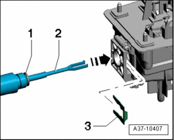 - Loosen quick-release screws -2- and -3- and remove rear noise insulation.