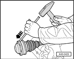 - Clamp constant velocity joint with drive shaft in vise, as shown in illustration.