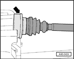 - Use adhesive tape or similar - arrow - to keep components of constant velocity joint together.