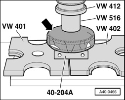 Special tool 40-204 A and the clamping surface on drive shaft must be free from grease.