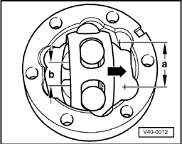 ^ When inserting, ensure that the wide spacing - a - on the joint body is aligned with the narrow spacing - b - on the hub after swivelling in.