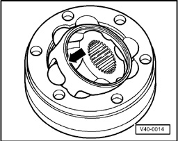 The constant velocity joint has been correctly assembled if the ball hub can be moved by hand backwards and forwards over its entire axial adjustment range.
