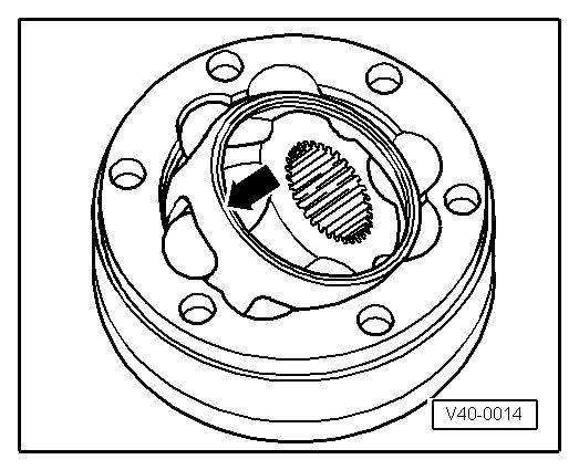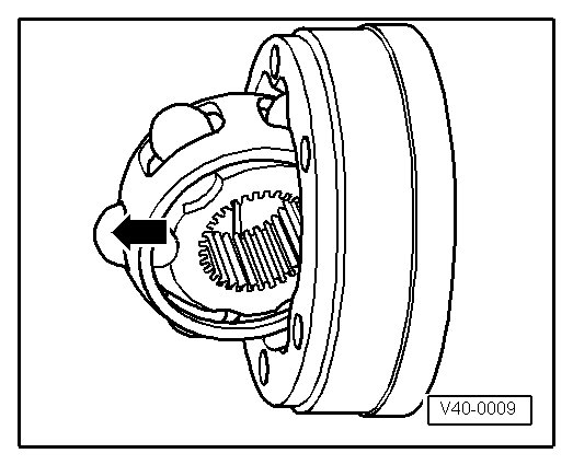 - Swing ball hub and ball cage and pull out of joint in direction of - arrow -.