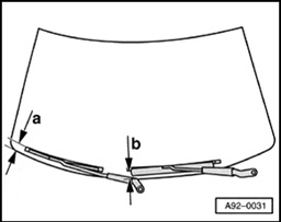 NOTE: The dimensions indicate the gap between the wiper blades to cowl grille of plenum chamber at lower edge of windshield.