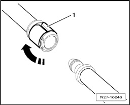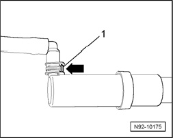 - To disconnect the connection, pull the circlip - 1 - up approximately 1 mm - arrow - and remove the hose connection.