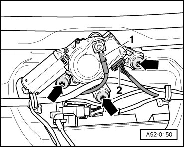 - Disconnect washer fluid hose - 1 - from connecting pipe for spray jet.
