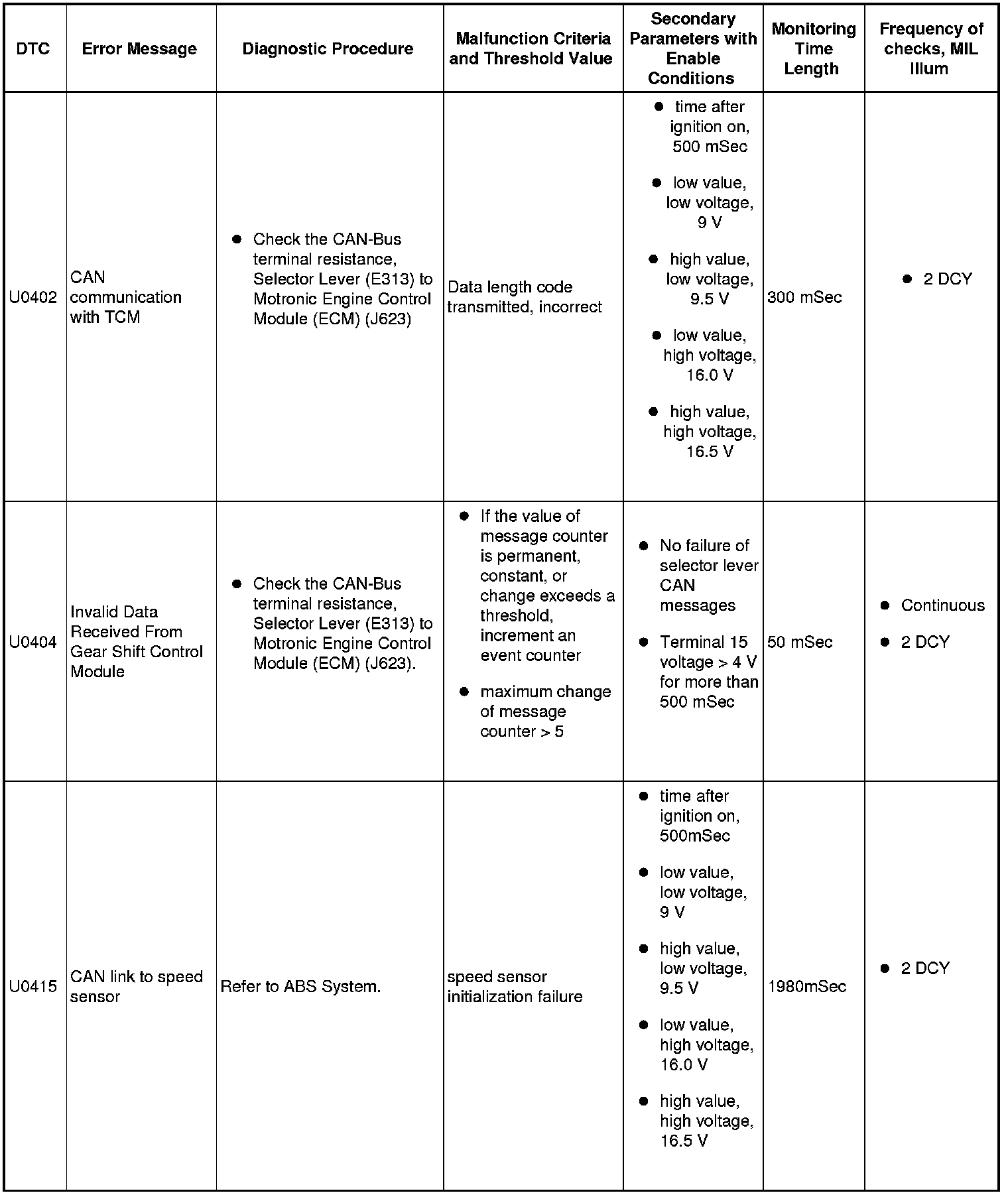 DTC Tables