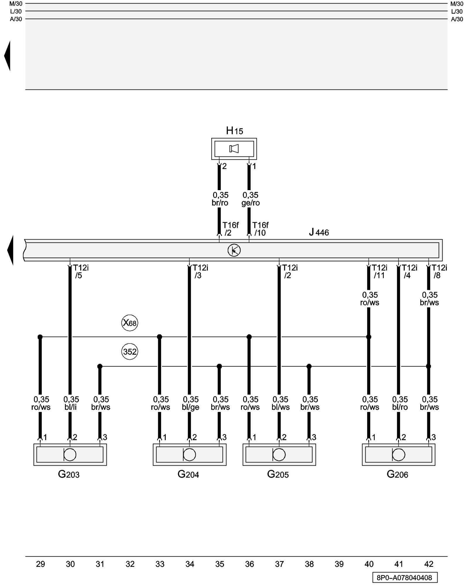 G203 - Left Rear Parking Aid Sensor Parking Aid Assembly Overview - Through 05.2008