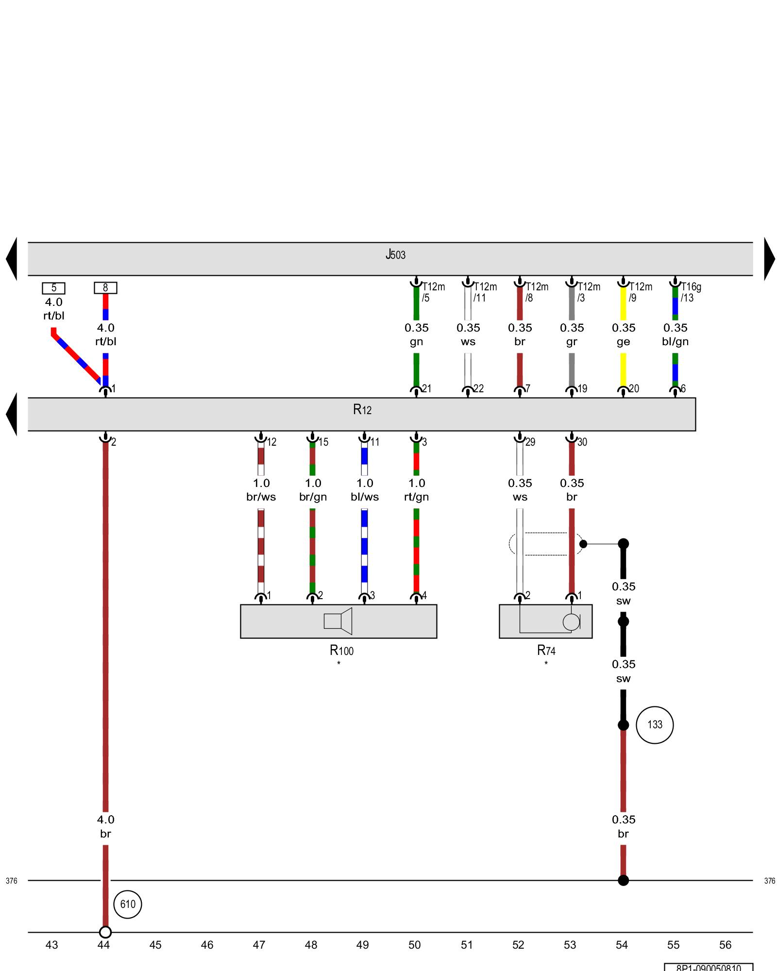 Radio/navigation display unit control module, Amplifier, Interior microphone, Bass speaker