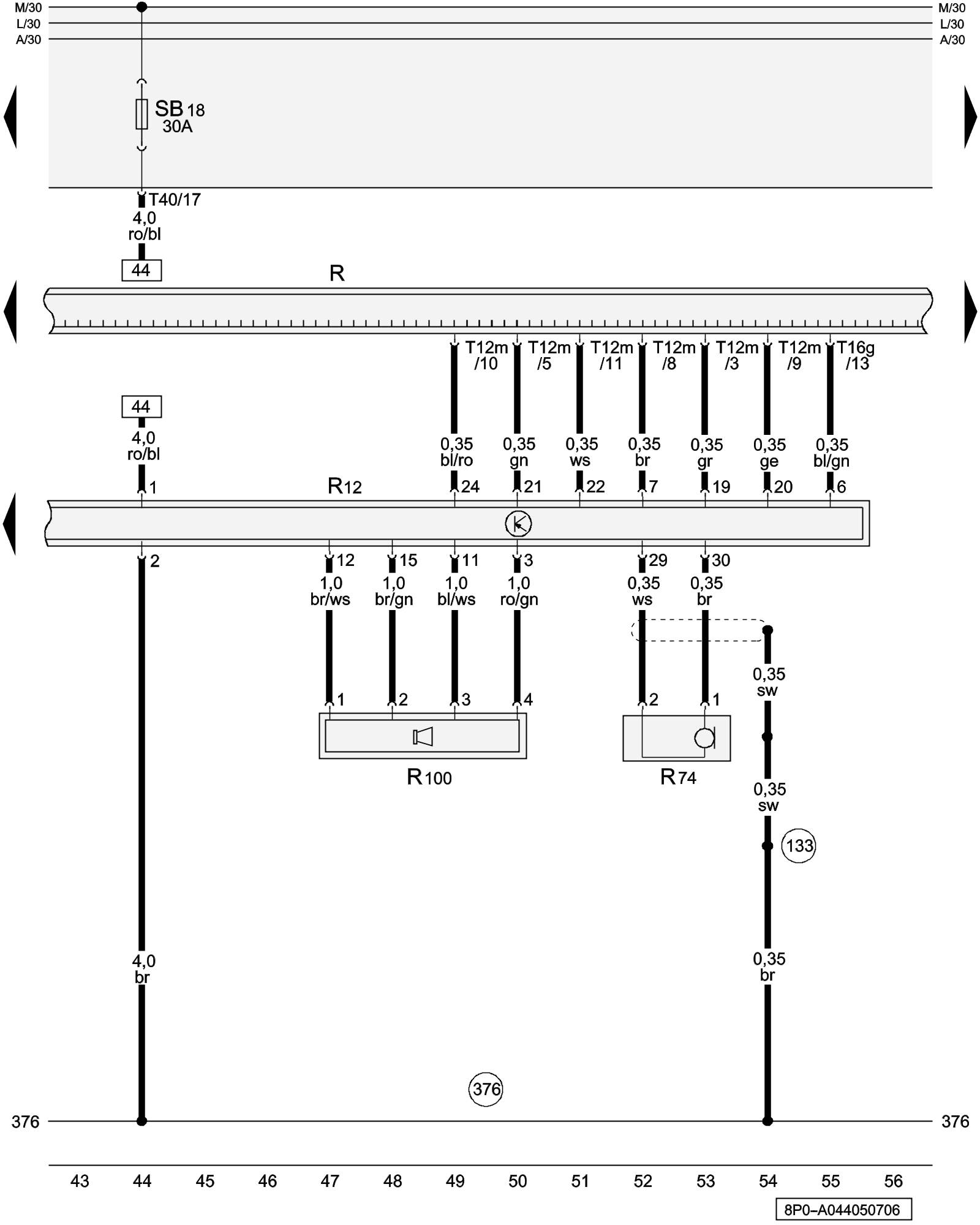 (133) - Ground Connection (in speaker wiring harness)