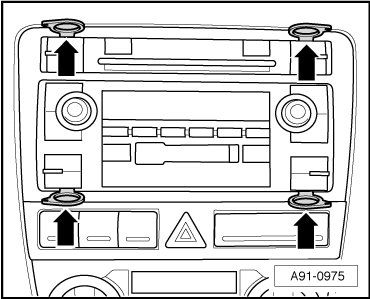 - Remove radio (R) from instrument panel.