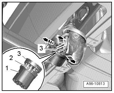 - Release the retaining clips - arrows - and remove retainer - 2 - from multiple connector - 3 -.