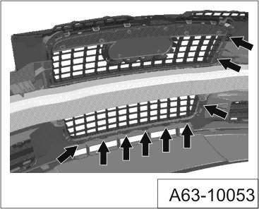 - Pull radiator grille toward front out of bumper cover.