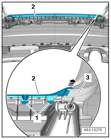 - Open the retaining clips - 1 - along the entire length and remove the trim panel - 2 - for the bumper cover from the bumper cover - 3 - - arrow -.