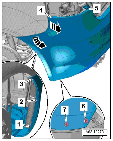 - Remove the bolts - 1, 2 and 3 - on the bumper cover side pieces.