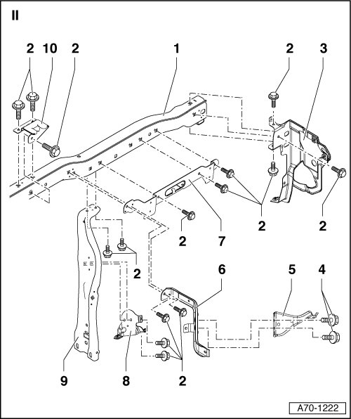 • To provide a better overview, the central tube with its attachments and fasteners is divided into two parts in the illustration, central tube I and central tube II.