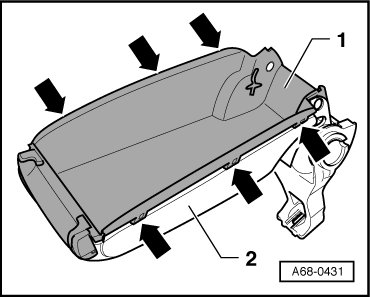 - Press storage compartment - 1 - together in bushing area - arrows -.