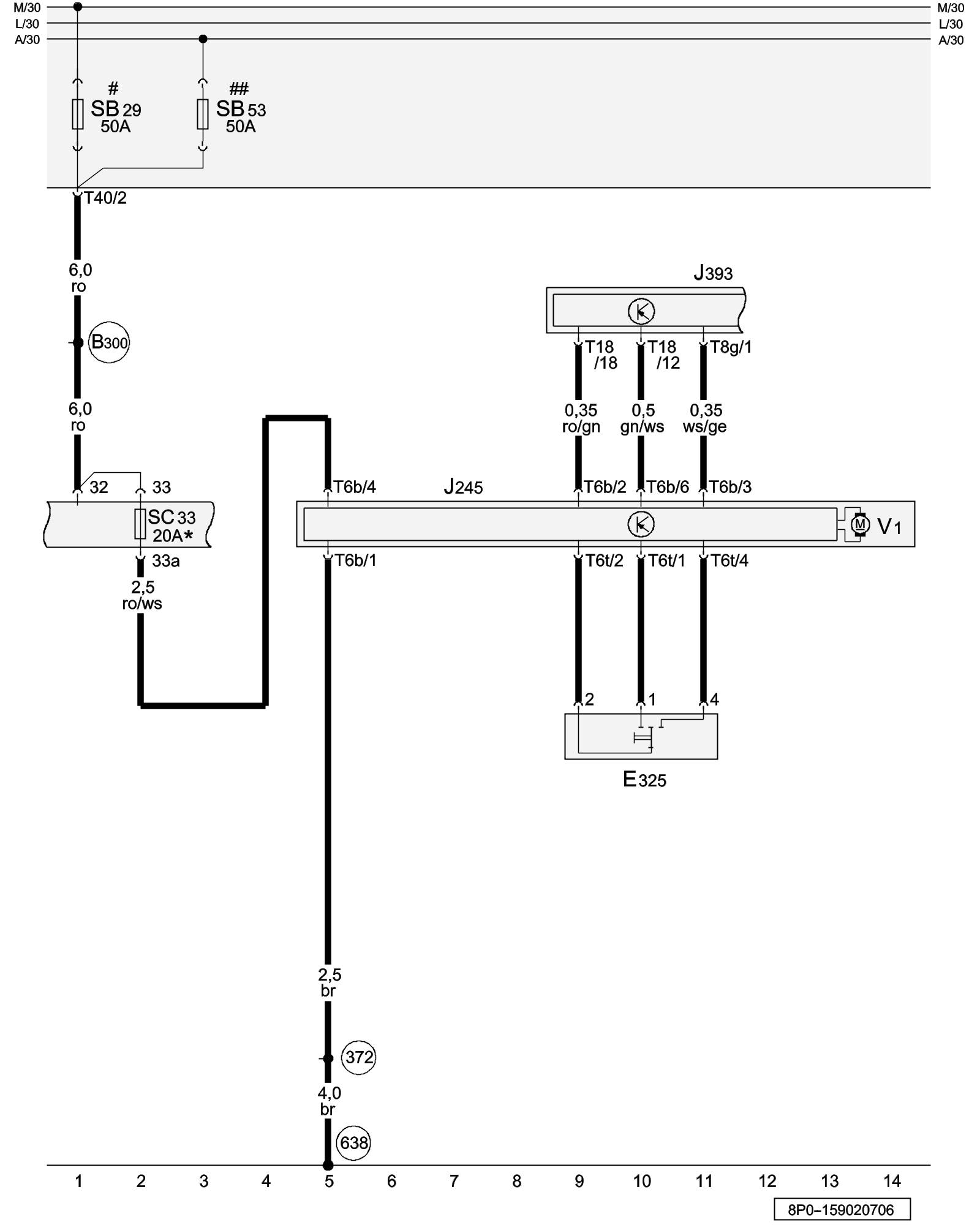 * - Fuse was reduced from 25 A to 20 A, applicable from model year 2007
