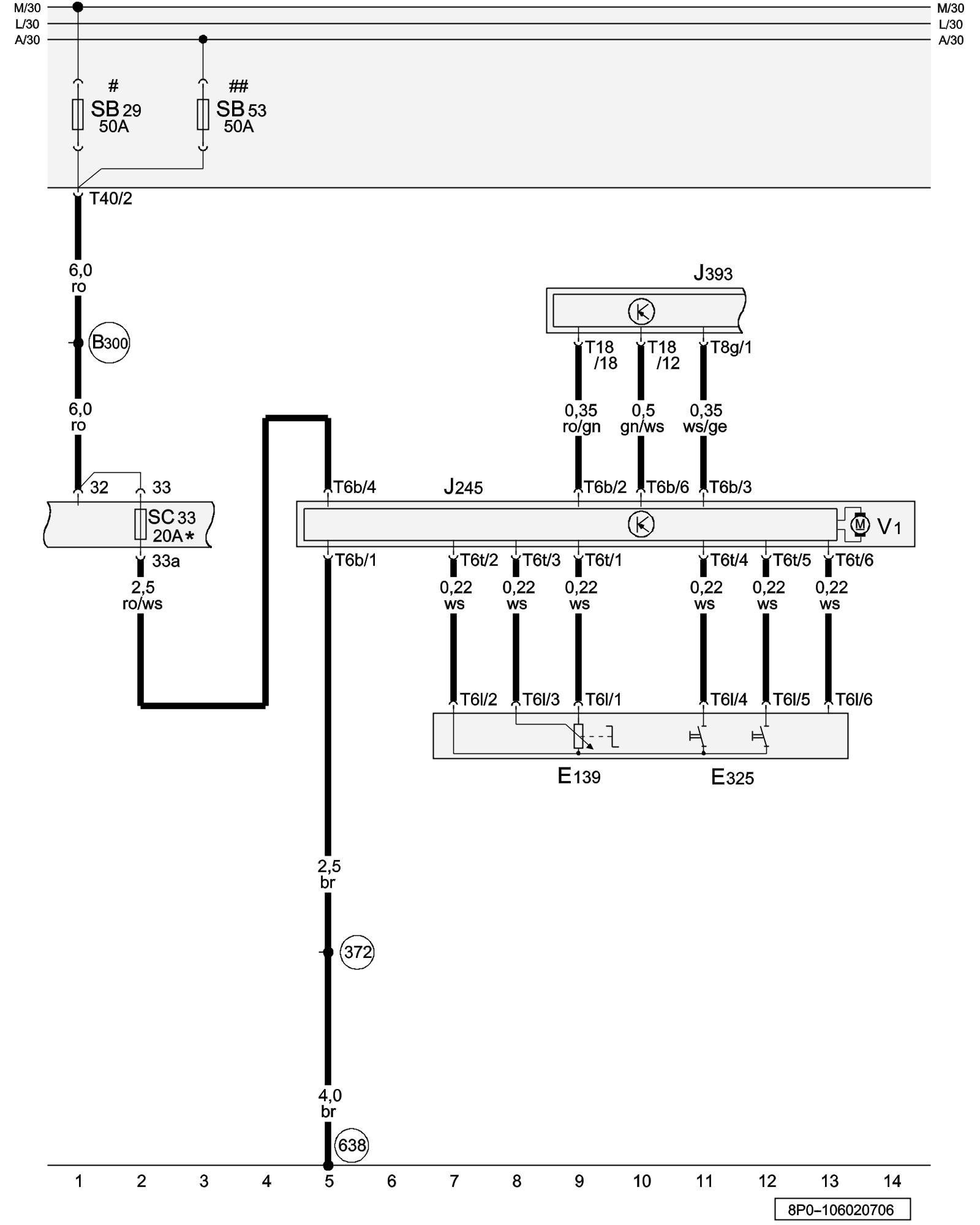 * - Fuse was reduced from 25 A to 20 A, applicable from model year 2007