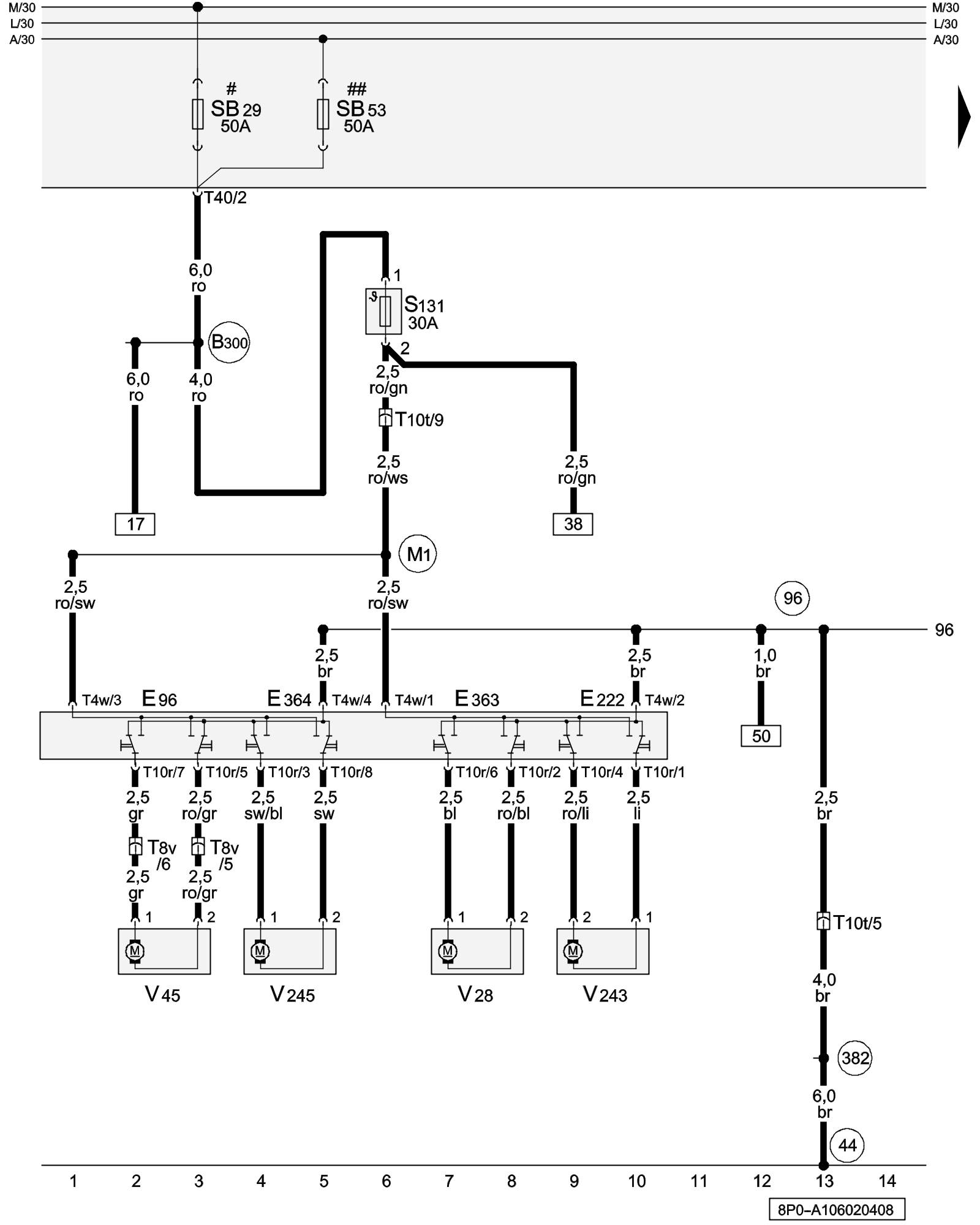 (M1) - Plus Connection 1 (30) (in power seats wiring harness)