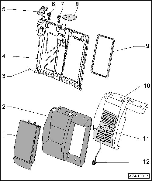 • Removing and Installing, refer to => [ Cover, with Center Armrest, Separating from Right 2/3 Backrest Upholstery ] Cover, with Center Armrest, Separating from Right 2/3 Backrest Upholstery