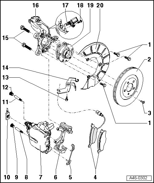 • Allocation, dimensions, wear limits, refer to => [ Brakes ] Brakes