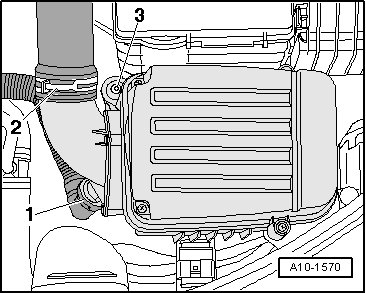 - Disconnect the connector - 1 - on the mass airflow sensor.