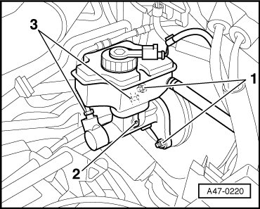 - Draw off as much brake fluid as possible from brake fluid reservoir using (VAS 5234) or (V.A.G 1869/4).