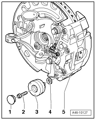 - Install a new bolt - 2 - and tighten it to 10 Nm.
