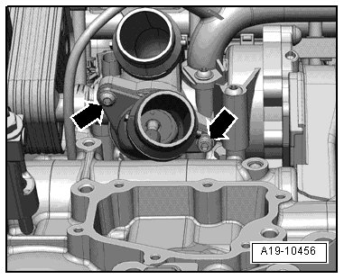 • Tightening specifications, refer to => [ Coolant Pump and Thermostat Overview ] Coolant Pump and Thermostat Overview.