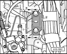 ^ A distance of -x- = 16 mm must be present between engine mount -1- and engine mount bracket - 4.