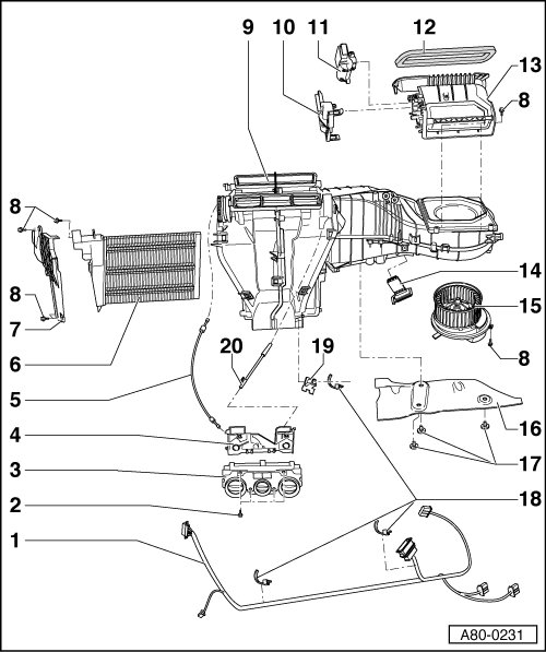 This illustration shows version for vehicles with Auxiliary Air Heater Heating Element (Z35).