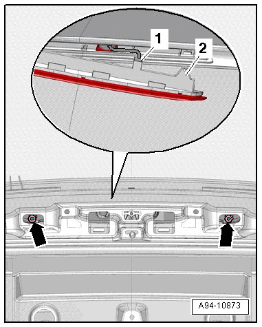 - Remove the high-mounted brake lamp - 2 - from the roof spoiler opening.