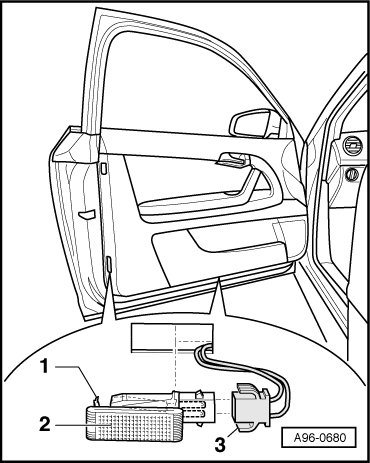 - Remove bulb - 1 - (12 V 5 W) from socket - 2 - on rear side of door safety light or entry light.