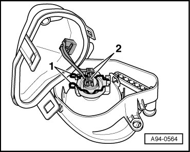 - Disengage the wire clamp - 1 - and remove the bulb from the housing.
