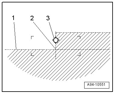 • The point - 2 - between the left horizontal part and the right vertical part of the light-dark border must run vertically through the central mark - 3 -. The bright core of the light beam must be to the right of the vertical.