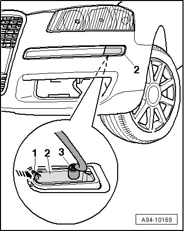 - Press the side marker lamp - 2 - from the bumper cover.