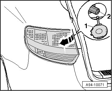 - Remove the tail lamps from the inside - arrows -, while doing this, the tail lamps will come out of the clip nuts.