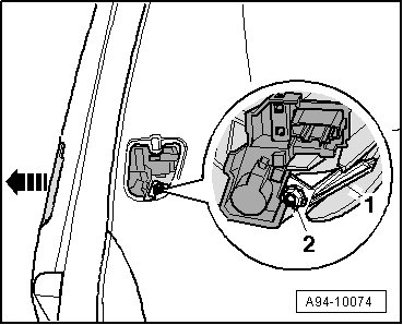 - Unclip plugs - 1 - with a small screwdriver from luggage compartment trim - arrow -.