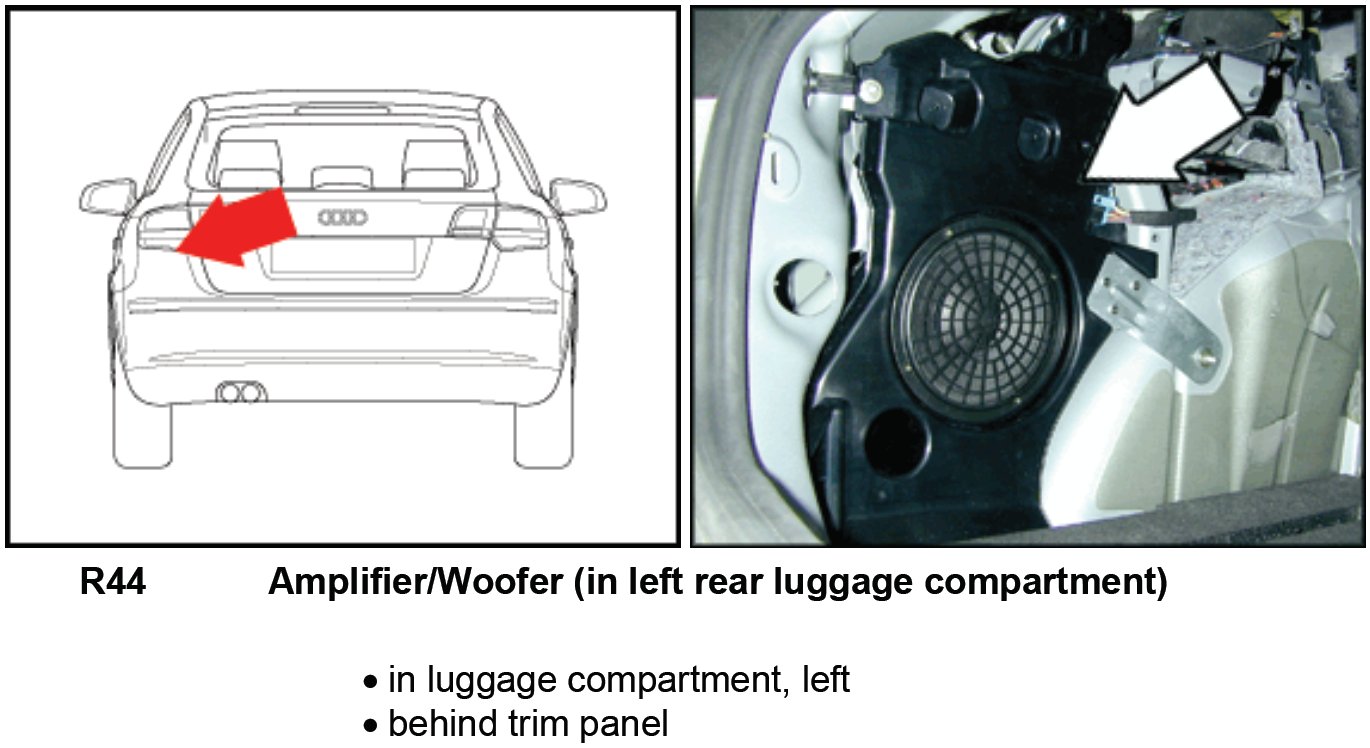 Amplifier/Woofer (In Left Rear Luggage Compartment) R44