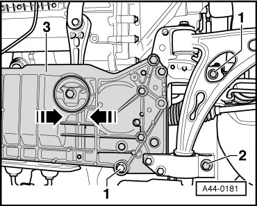 - Remove the bolts - 1 and 2 - and install new bolts loosely.
