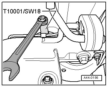 - Remove upper transverse link to subframe connection nut - A - and loosely install new nut.