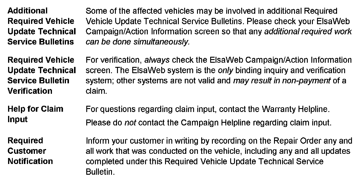 ^ Procedure is valid only for vehicles that show the 19F7 code in the ElsaWeb Campaign/Action Information screen on the day of repair.